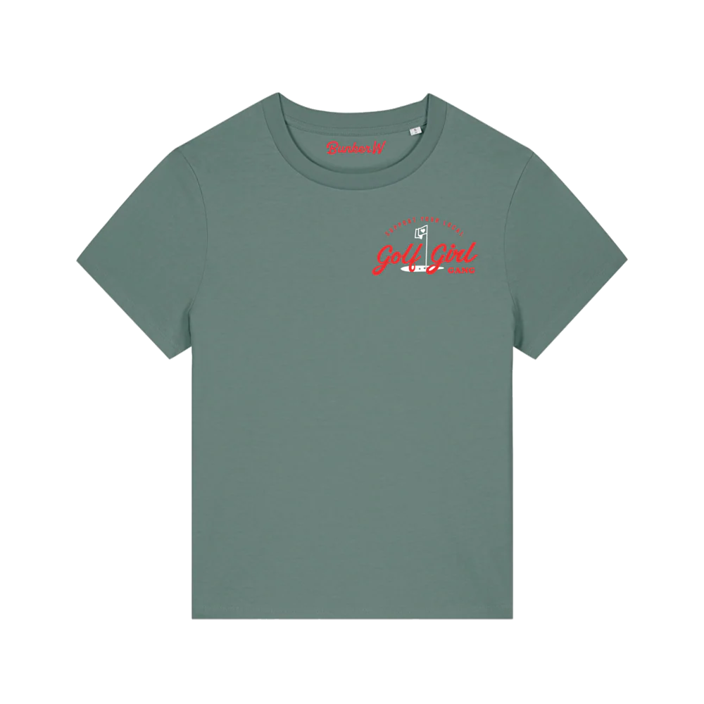 Be a founding member of the Golf Girl Gang with our signature T-shirt, featuring the iconic Bunker Woman Golf Girl Gang logo on the front.