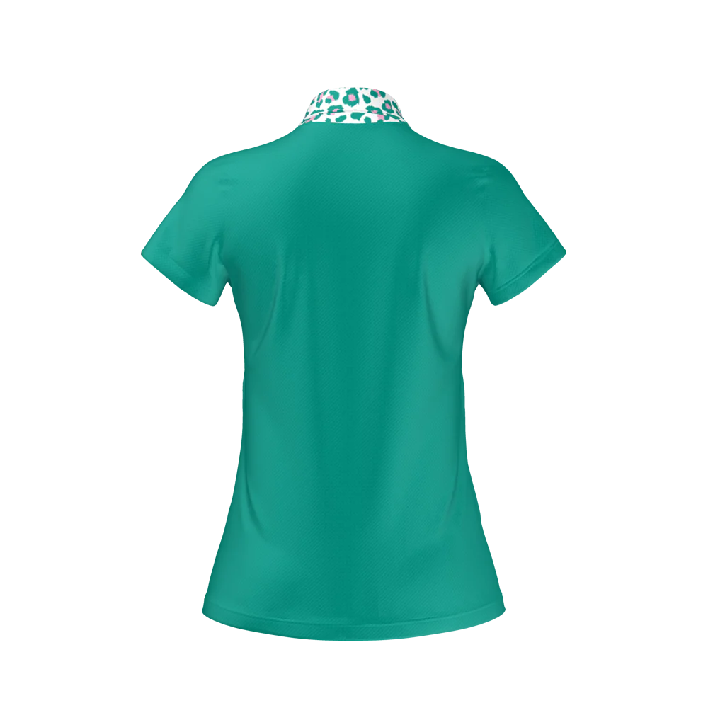 The fresh green polo, paired with a green animal print contrast collar, offers a bold yet refined look that adds style to your game.